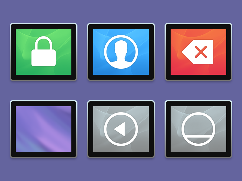 We made 7 simple apps: Screen Saver, Empty Trash, Lock, Log Out, Sleep, Restart, Shut Down.